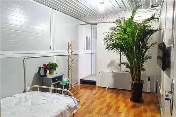每套隔离方舱配备了网络电视、热水、电暖气、wifi、挂画、书报、绿植等,生活设施一应俱全,努力为每一位隔离人员营造良好的环境,确保大家住得下、住得好。